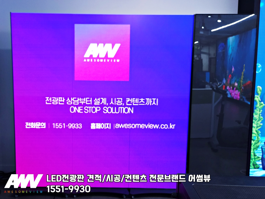 어썸뷰 쇼룸에는 실내 벽면형, 외벽 출입문 벽면형, 천장형 어썸큐브와 함께