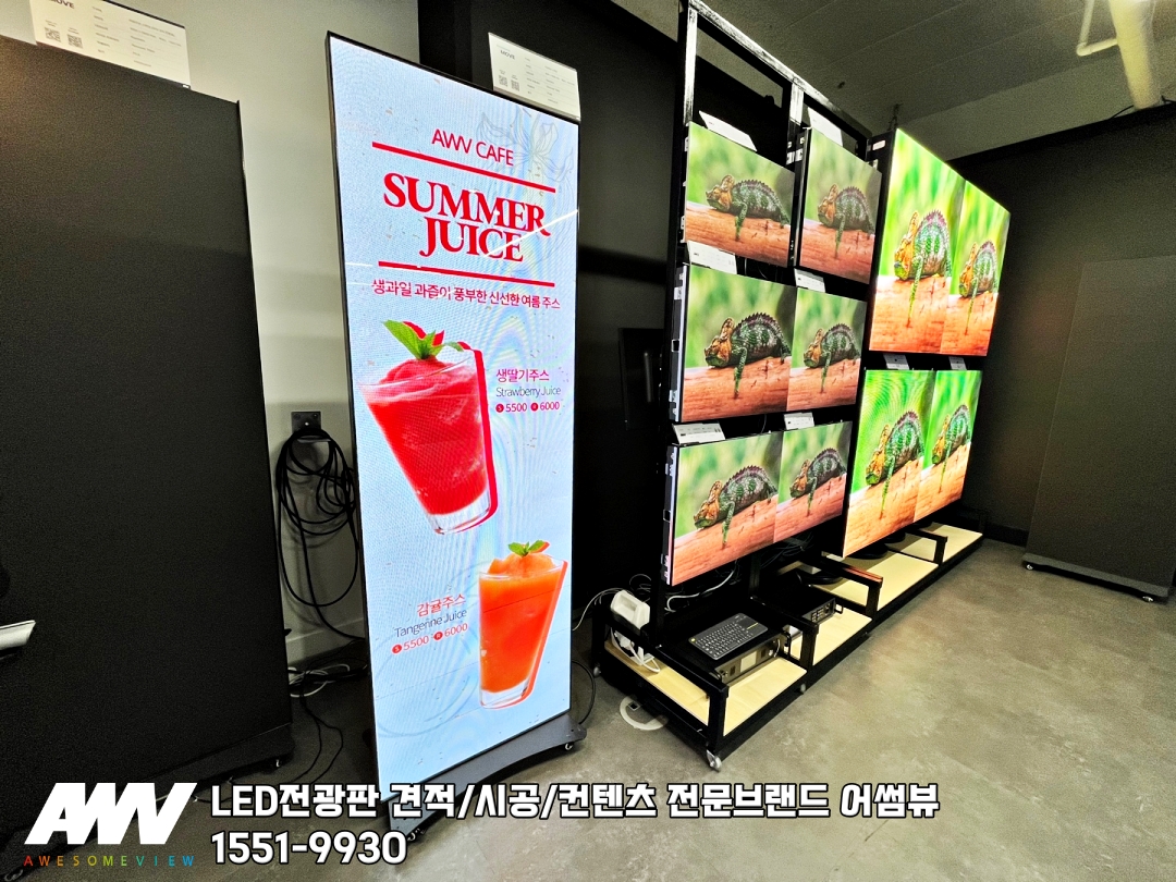 어썸무브는 1개의 전광판으로 스탠드형 배너나 간판과 같이 단독으로 쓸 수 있으며,